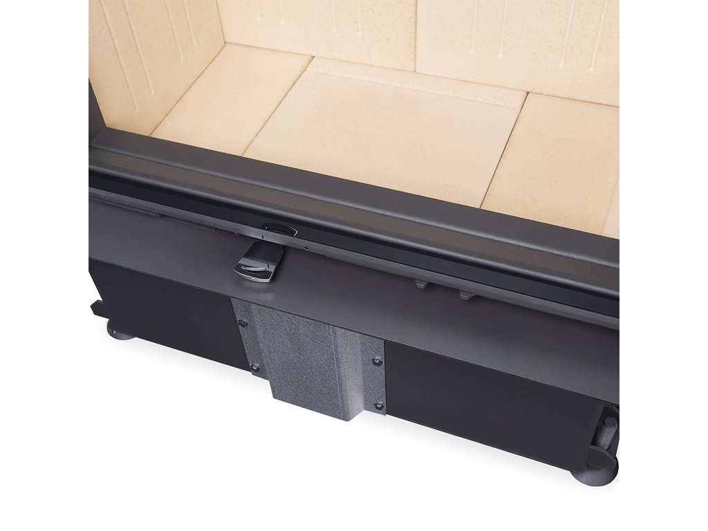 Vysoké sklo zabezpečuje výnimočný pohľad do ohňa a vytvára luxusný vizuálny zážitok. Spoľahlivý výsuv dvierok garantuje inovatívny mechanizmus SILENT LIFT, ktorý funguje ticho, hladko a presne. Otváranie je riešené odnímateľnou kľučkou, ktorú si zákazník môže vymeniť za pevnú.