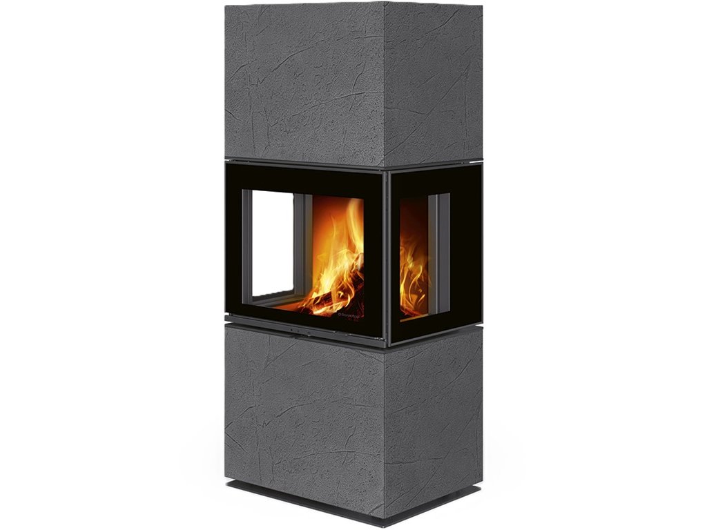 Na výber máte z troch typov obkladu – keramika v rôznych odtieňoch, prírodný kameň alebo lakovaný plech – čo umožňuje dokonale zladiť krb s akýmkoľvek interiérom.