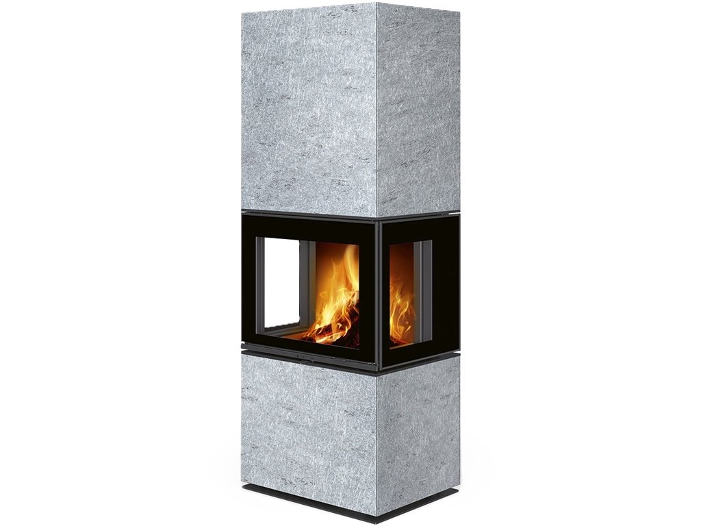 Na výber máte z troch typov obkladu – keramika v rôznych odtieňoch, prírodný kameň alebo lakovaný plech – čo umožňuje dokonale zladiť krb s akýmkoľvek interiérom.