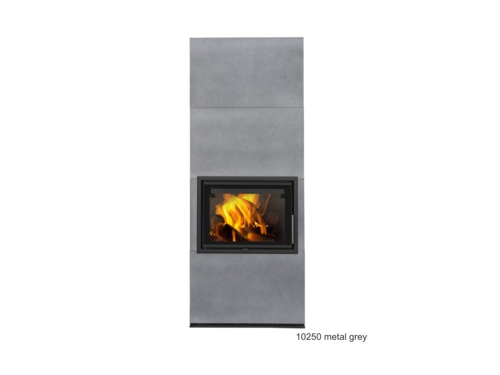 Veľkoformátové ručné keramické obklady sú umiestnené na všetkých štyroch stranách krbu a sú dostupné v rôznych farebných a povrchových prevedeniach. V ponuke sú tri varianty ohniska: