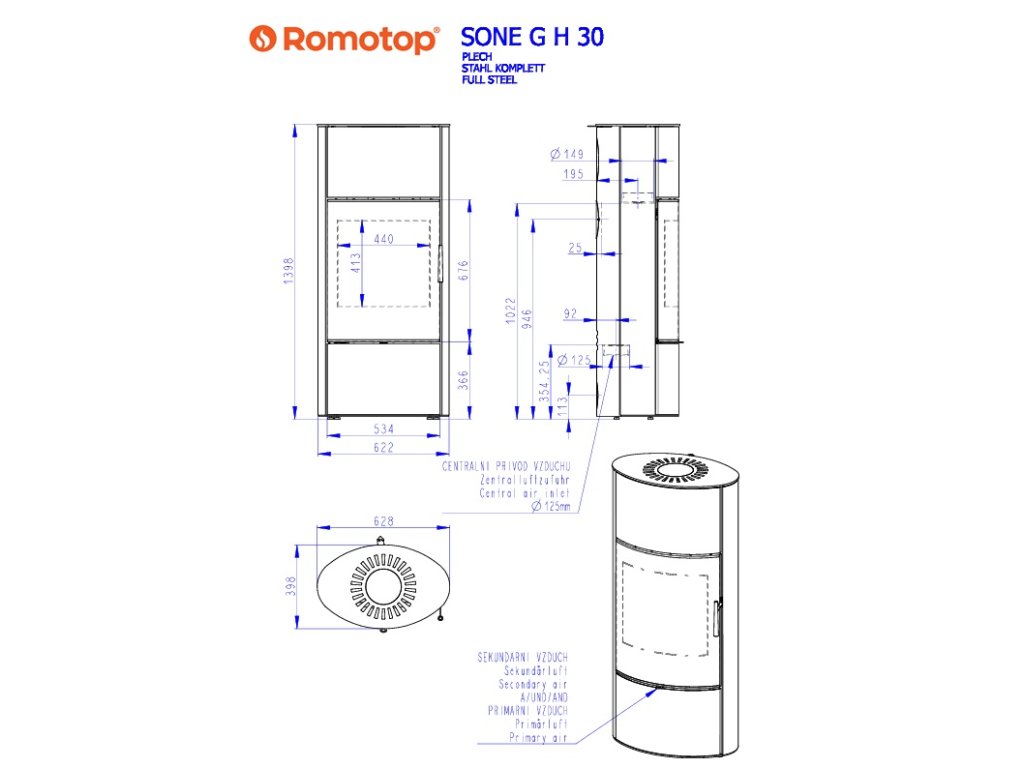 Romotop SONE G H oceľ, čierny plech