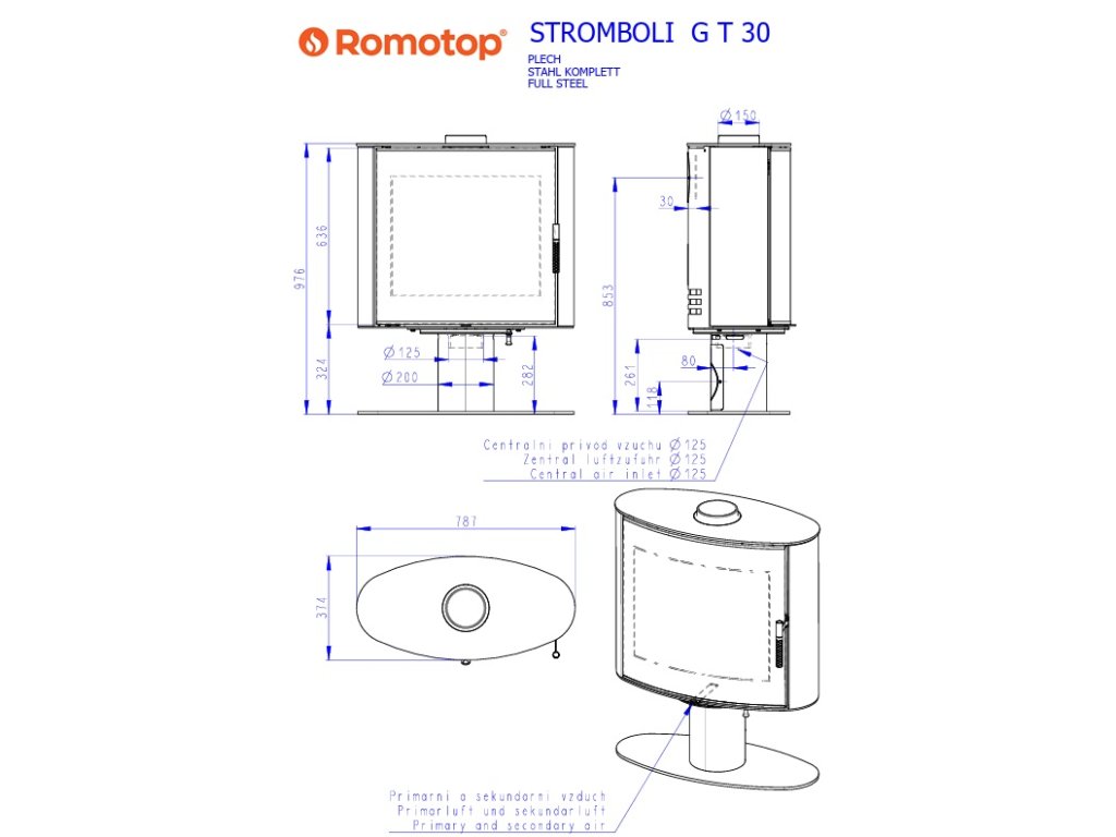 Krbové kachle Romotop STROMBOLI G T kombinujú moderný dizajn, vysoký výkon a praktické funkcie, ktoré zaručujú komfortné a efektívne vykurovanie vášho domova. Ich otočný mechanizmus, veľké presklené dvierka a možnosť pripojenia externého prívodu vzduchu ich robia ideálnou voľbou pre tých, ktorí hľadajú spoľahlivé a štýlové riešenie pre svoj interiér.
