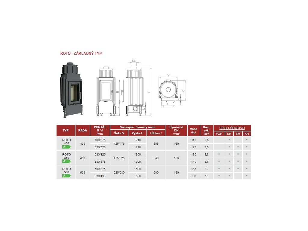 Masívna konštrukcia krbových vložiek ROTO umožňuje ďaleko vyššie tepelné zaťaženie ako u klasických krbových vložiek. Vzhľadom k tomu sú vhodné na akumulačné obstavanie podobné ako u klasických pecí. Konštrukcia krbových vložiek je vytvorená masívnym oceľovým zvarencom, vhodne doplneným liatinovými prvkami, povrchovo upravená tepelne odolným ekologickým lakom.