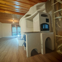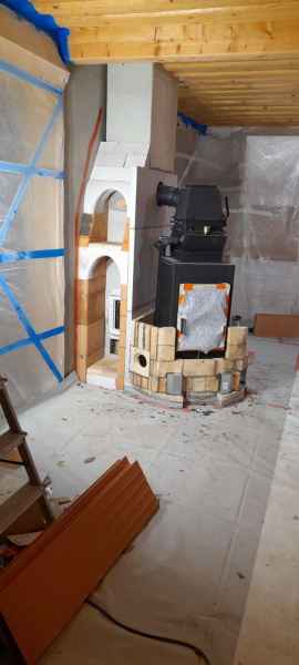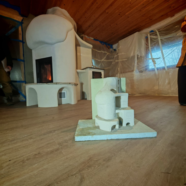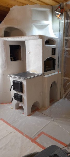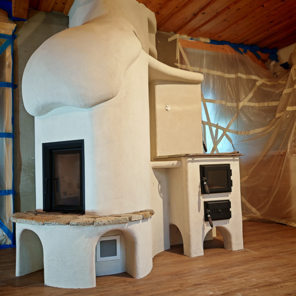 Toto dielo však nie je len o vykurovaní. Súčasťou stavby je aj sporák s varnou platňou a trúbou na pečenie, čím sa z celého projektu stáva nielen technicky premyslený zdroj tepla, ale aj funkčný a živý prvok domácnosti.