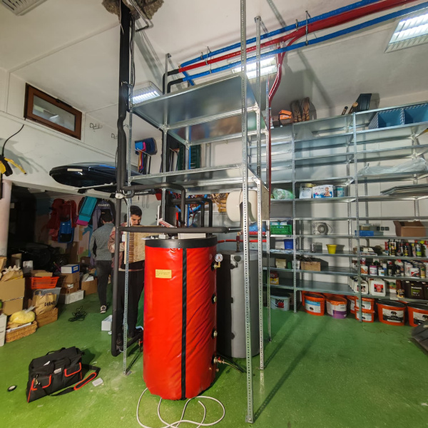 Ako vykurovacie teleso bola zvolená novinka – teplovodná krbová vložka Hoxter HAKA 37/50 WTR s integrovaným čističom výmenníka. V pivničných, respektíve garážových priestoroch sme následne umiestnili celú regulačnú technológiu spolu s akumulačnou nádobou, aby celý systém fungoval spoľahlivo, efektívne a s vysokým tepelným komfortom.